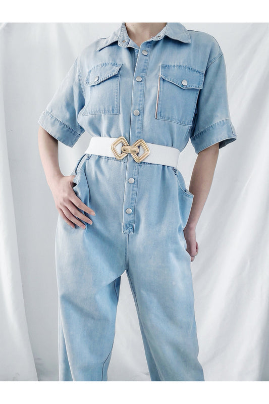 Geometric Buckle Elastic Wide Belt