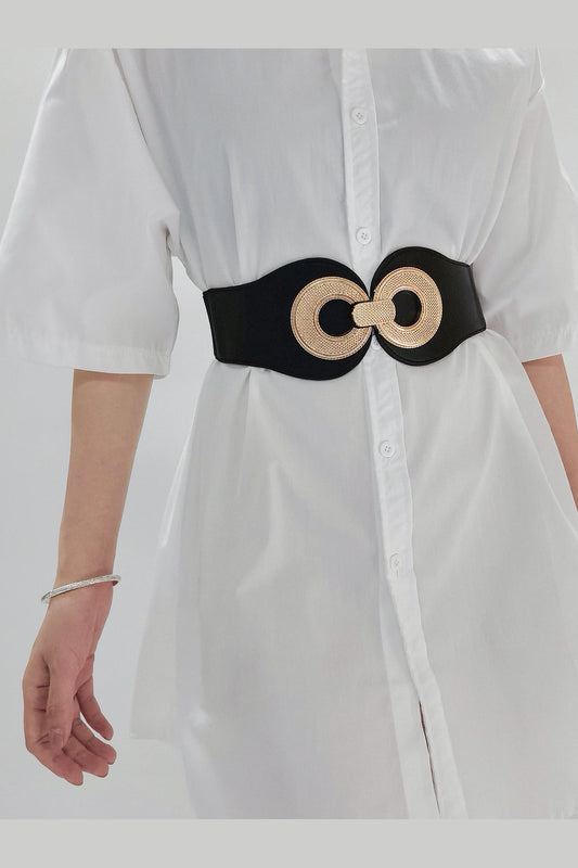 Geometric Buckle Wide Elastic Belt