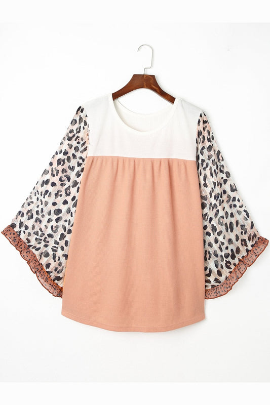 Plus Size Leopard Print Ruffle Trim Blouse