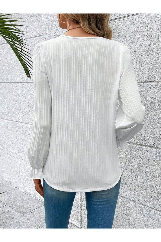 Textured V-Neck Flounce Sleeve Blouse