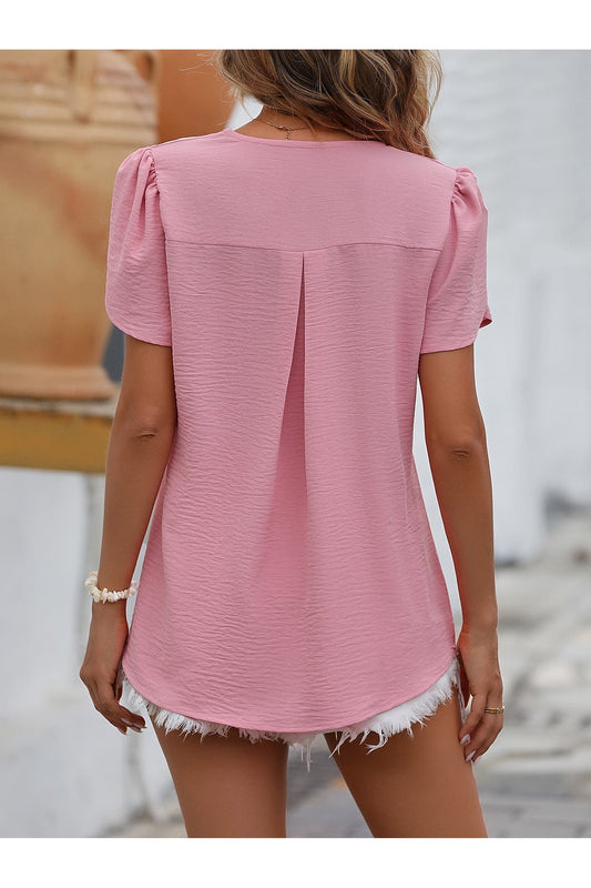 Elegant Ruched Round Neck Petal Sleeve Blouse