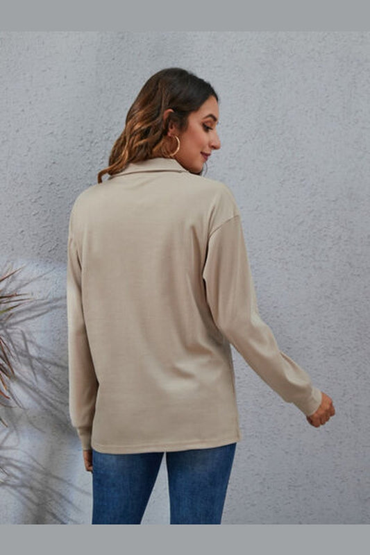 Half Button Dropped Shoulder Blouse for Effortless Style