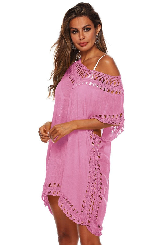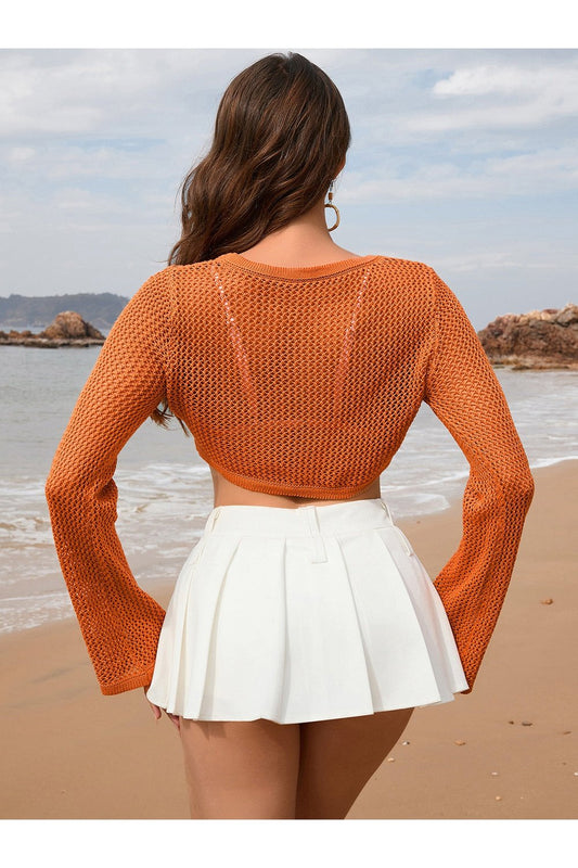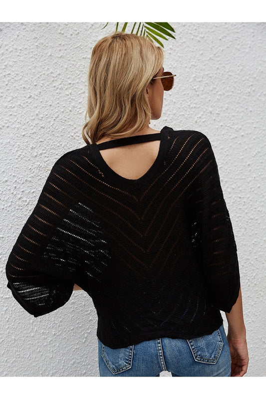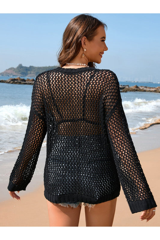 Openwork Dropped Shoulder Long Sleeve Swim Cover-Up