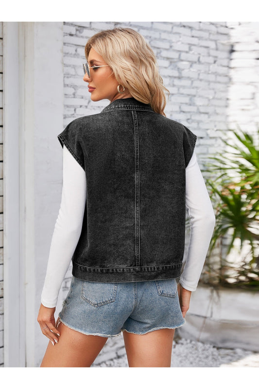 Chic Raw Hem Ruffled Cap Sleeve Denim Jacket