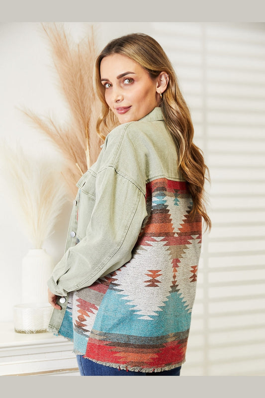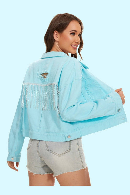 Tassel Button-Up Dropped Shoulder Denim Jacket