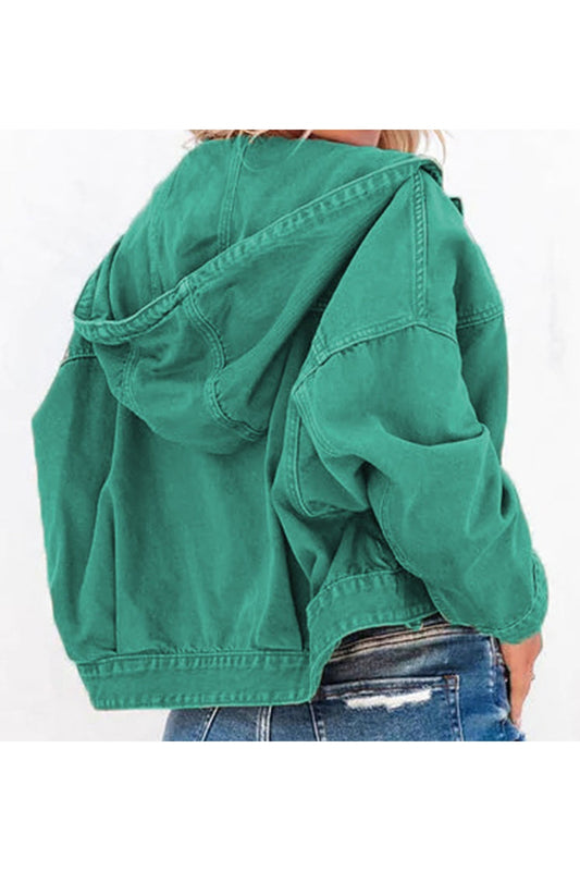 Adjustable Drawstring Hooded Pocketed Denim Jacket