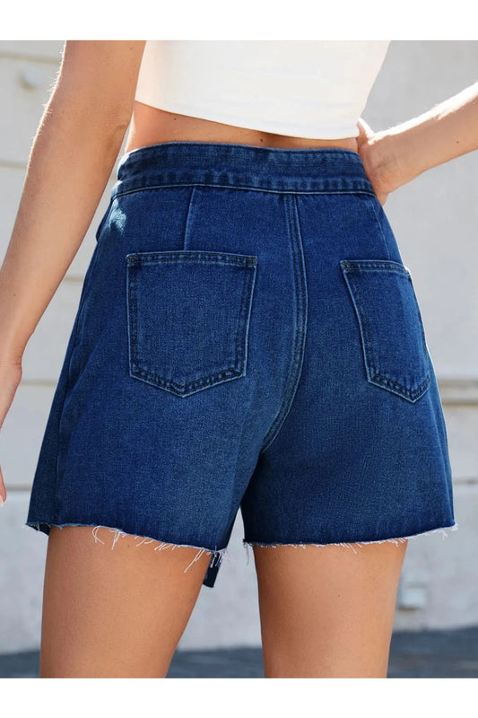 Playful Raw Hem Pocketed Denim Shorts