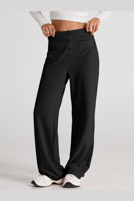 Decorative Button Straight Leg Pants