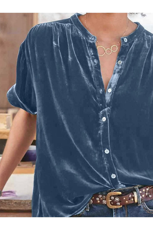 Mandy Textured Cap Sleeve Button-Up Shirt