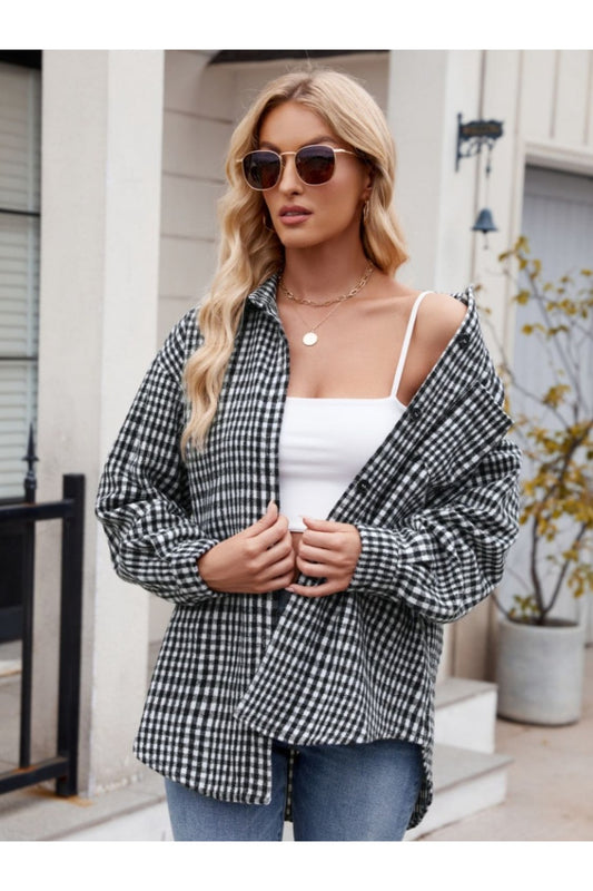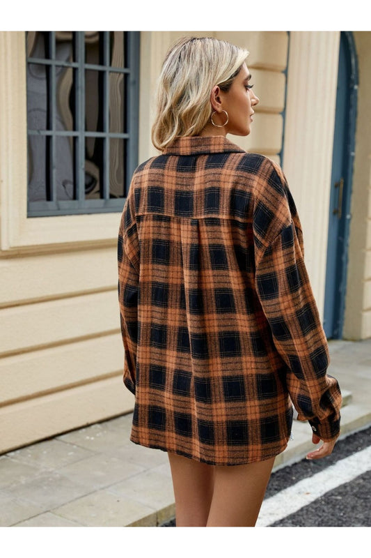 Plaid Collared Neck Long Sleeve Shirt - Full Size