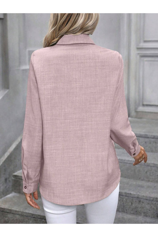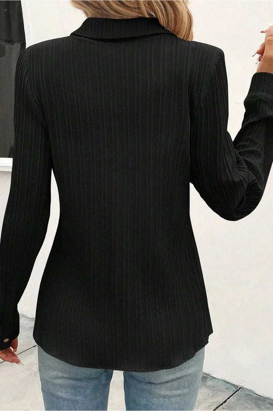 Textured Collared Neck Button Down Long Sleeve Shirt