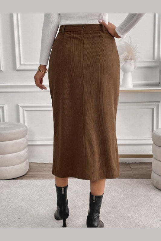 Slit Midi Skirt with Pockets - Chic & Versatile