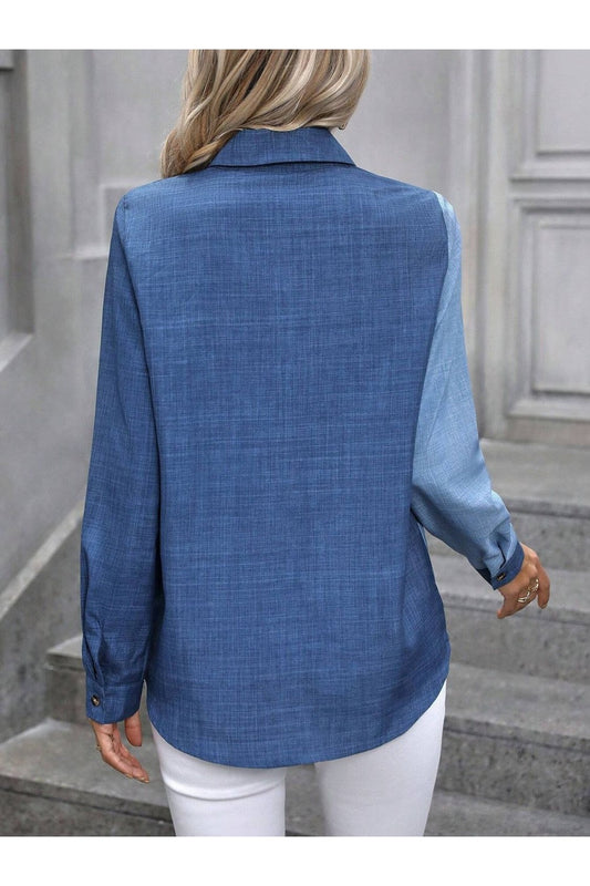 Contrast Collared Neck Long Sleeve Shirt
