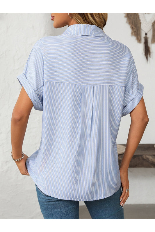 Mandy Striped Collared Short Sleeve Shirt with Pockets