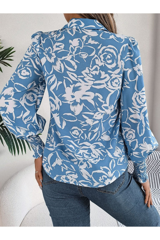 Printed Collared Neck Lantern Sleeve Shirt