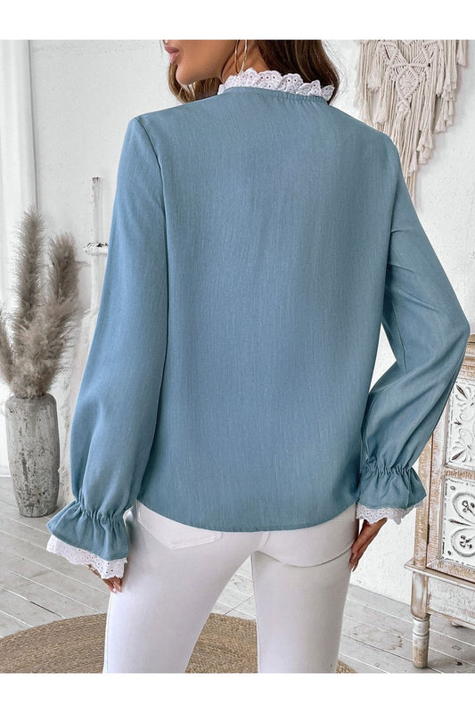 Perfee Lace Detail Button Down Long Sleeve Shirt