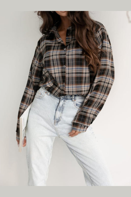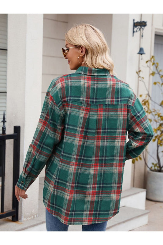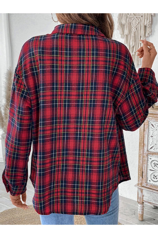 Plaid Collared Neck Long Sleeve Shirt