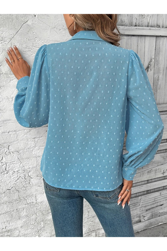 Full Size Swiss Dot Long Sleeve Collared Shirt