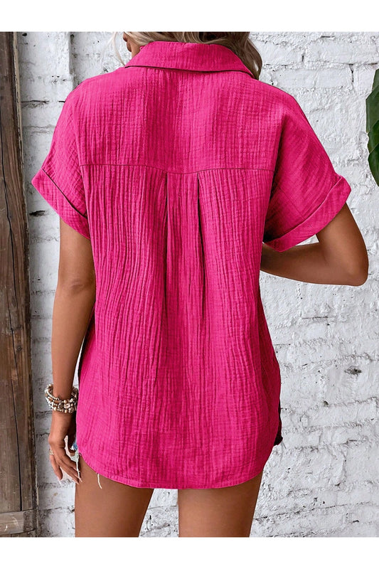Lovelet Textured Button-Up Short Sleeve Shirt