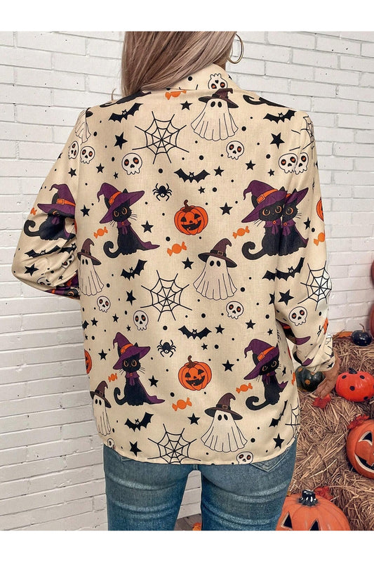 Halloween Collared Long Sleeve Shirt for Festive Style