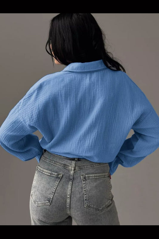 Mandy Textured Pocketed Button-Up Shirt