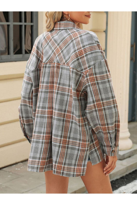 Perfee Classic Plaid Dropped Shoulder Shirt