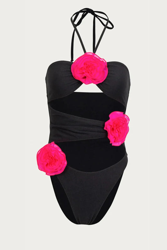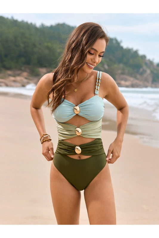 Contrast Cutout Halter Neck One-Piece Swimwear