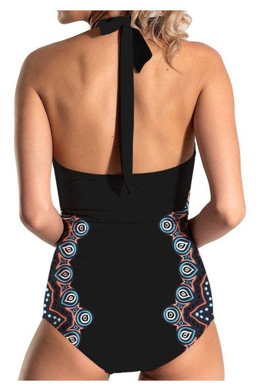 Printed V-Neck Sleeveless One-Piece Swimsuit