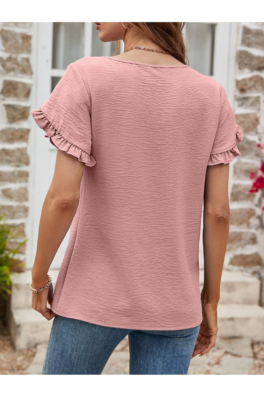 Textured Petal Sleeve Round Neck Tee